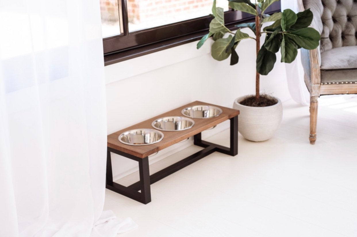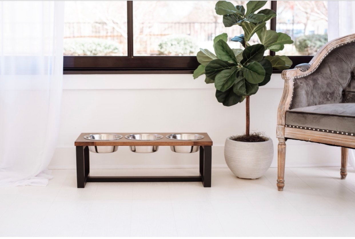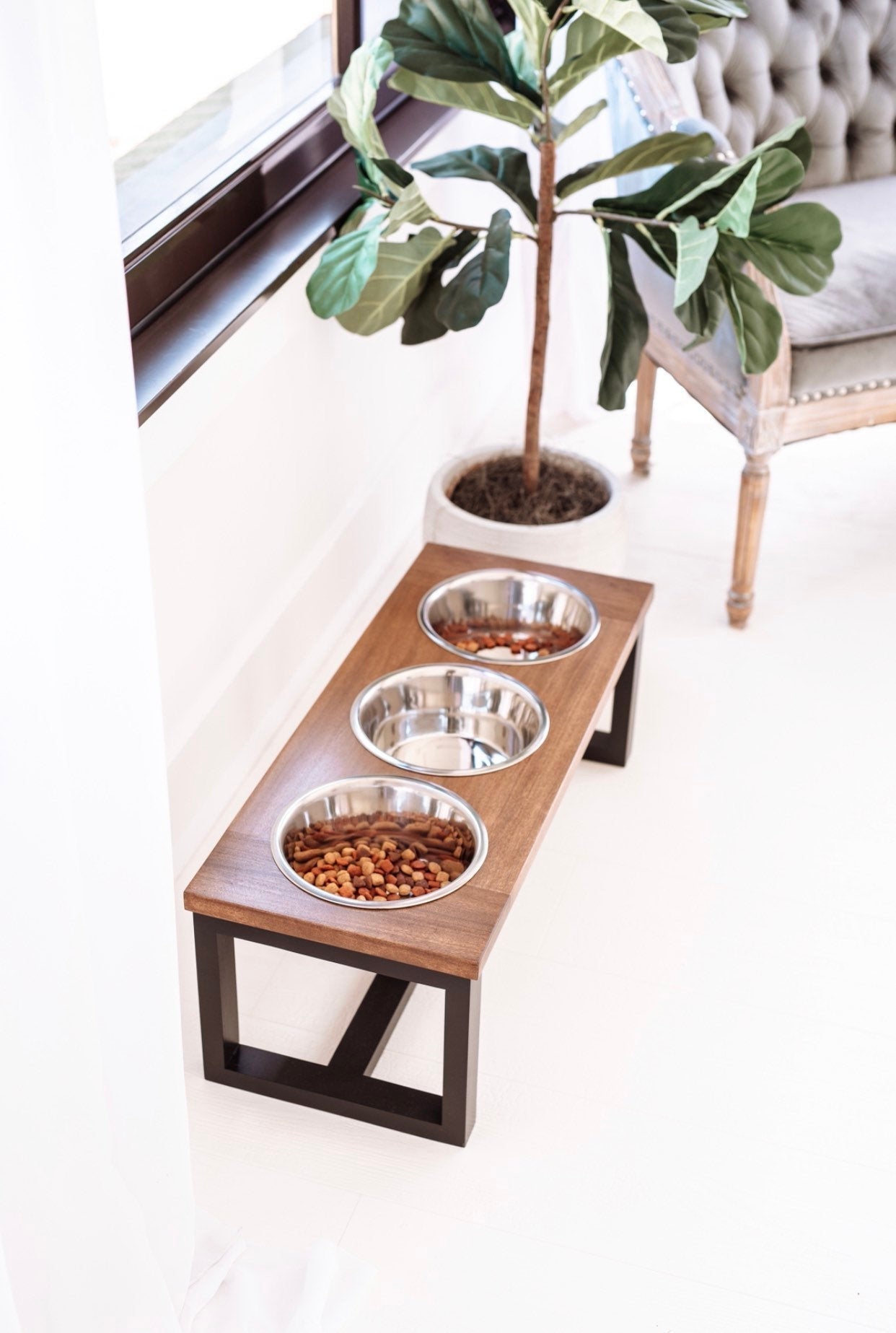 Large Raised Dog Bowls, Mid Century Modern Dog Bowl Stand, Triple Dog Feeding Station, Dog Lover Gift